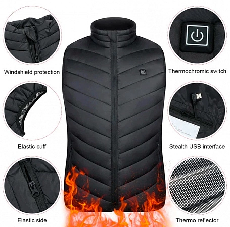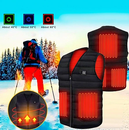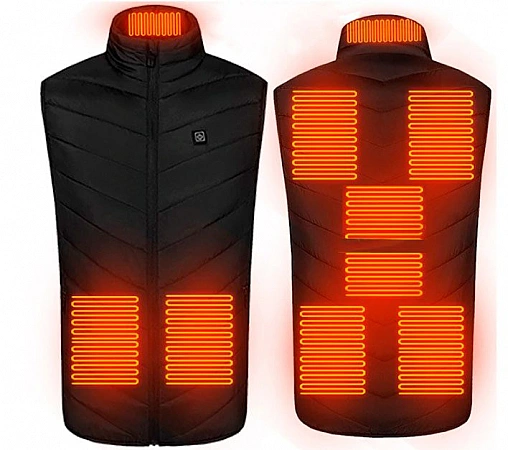 Ce modèle est acheté sept fois plus souvent que les autres gilets chauffants.Les vêtements sont bien faits, mais le design est légèrement différent de la photo du catalogue. Il y a cinq éléments chauffants. Ils sont petits, légèrement plus grands qu'une carte plastique (9x7 cm). L'efficacité de ces bébés est la meilleure - en 2 minutes, ils chauffent jusqu'à 45 degrés. L'alimentation peut être cachée dans une poche. Mais toutes les Power Bank ne sont pas adaptées à un fonctionnement correct - il est préférable de jeter immédiatement les modèles bon marché sans nom. Il y a un réglage des modes de chauffage et une protection contre la surchauffe. Il y a des critiques selon lesquelles le gilet tolère normalement le lavage, bien que le vendeur ne dise rien à ce sujet. En général, les acheteurs s'accordent à dire que la chose est bonne, qu'elle en vaut la peine.