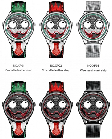 Grâce à AliExpress, l'emblématique montre Joker peut être achetée pour une petite somme. Ils ressemblent presque à l'original. Bien sûr, il y a des différences, mais seuls ceux qui sont « au courant » les remarqueront. Le rôle du chronomètre ici est donné aux yeux - celui de gauche indique les heures, celui de droite - les minutes. Il n'y a plus d'indicateurs.L'indicateur du jour de la semaine est manquant, tout comme la trotteuse. Le design sans flèche semble inhabituel, mais il n'y a pas de rétroéclairage, de sorte que le cadran n'est pas lisible dans l'obscurité. La montre d'origine est complétée par un beau bracelet, mais sa qualité n'est pas la meilleure. Apparemment, donc, le vendeur complète le package avec un bracelet de rechange. Et tout cela, avec un tournevis et du velours, est livré dans une bonne boîte, ce qui n'est pas dommage de donner.