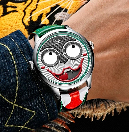 Au centre du cadran de cette montre se trouve un personnage inhabituel qui change d'expression faciale à chaque seconde. Pas de flèches - les pupilles des yeux indiquent l'heure ! Et la langue fonctionne comme un pendule.