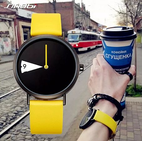 Montre créative pour lumineux et élégant. Ils n'en ont qu'un avec une flèche qui compte les heures. Les minutes sont affichées dans la fente du disque mobile. Vous n'avez pas besoin de vous habituer à l'accessoire, tout est intuitif. La montre d'origine a l'air bien, sans un soupçon de bon marché.Ils marchent avec précision et calmement. Sur un poignet fin, ils n'ont pas l'air volumineux, mais un trou supplémentaire sur le bracelet peut être nécessaire. L'emballage de la marchandise est le meilleur : papier bulle, film, inserts souples dans la boîte - il y a tout ce dont vous avez besoin. La montre est censée être étanche, mais pour éviter les ennuis, il est préférable de la tenir à l'écart de l'eau, car cette caractéristique est exagérée. Il y a des plaintes concernant la sangle - elle n'est pas de la plus haute qualité, s'use rapidement et recueille la saleté.
