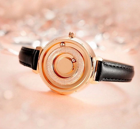 EUTOUR présente sur AliExpress une série de montres pour femmes cool dans un design sans poignée. Devant vous se trouve un modèle fonctionnel dans un boîtier en acier. Les aiguilles se sont transformées en petites sphères - qui comptent les heures et les minutes, se déplaçant le long de leur trajectoire. Il n'y a pas de chiffres ou de divisions sur le cadran. Mais vous pouvez naviguer par les marques sur le boîtier. Il existe plusieurs couleurs - de l'or et de l'argent classiques au noir mat. Toutes les montres attirent le regard. Les faiblesses incluent une couronne serrée et la difficulté d'ajuster le bracelet. Tout le monde n'aime pas le manque de verre sur le cadran, mais c'est plus une caractéristique de la montre d'origine qu'un inconvénient.