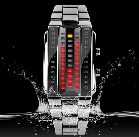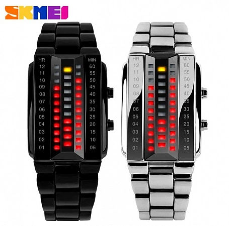 L'une des marques les plus populaires en Chine présente de nombreuses montres inhabituelles sur AliExpress. Fondamentalement, ce sont des modèles originaux multifonctionnels dans un style sportif. Cet appareil est dépourvu non seulement des flèches, mais également de l'affichage habituel avec des chiffres. Les montres dans les revues sont souvent appelées binaires, mais en fait elles n'ont rien à voir avec le système de référence binaire. Mais c'est encore mieux, car il n'est pas facile de déterminer l'heure à l'aide d'une horloge binaire. Ici, les développeurs utilisent trois "lignes de sélection", qui affichent les heures, les minutes et la date. Insolite également, la première fois il faut s'habituer à ce format. La montre elle-même est de haute qualité, étanche, avec un rétroéclairage lumineux. Mais ils sont assez lourds, ce qui est un inconvénient du modèle.