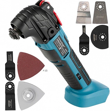 L'outil multifonction de NEWONE coûte non seulement moins cher que les analogues, mais diffère également par la variété maximale d'équipements. Vous pouvez commander un rénovateur avec une puissance supérieure ou inférieure, des ensembles avec une mallette, une mallette de transport, 6 lames de scie standard ou 66 lames de rechange. L'appareil fonctionne en trois modes avec des vitesses différentes. Il est possible de régler l'angle de traitement. Les critiques écrivent que le cutter est pratique à utiliser, il pénètre dans des zones reculées où une scie sauteuse ou une meuleuse ne convient pas. Il y a des inconvénients, mais pas trop grave : livraison longue, manque de notice et de marquages sur les couteaux. Les acheteurs sont invités à commander immédiatement un ensemble complet avec tous les accessoires et la meilleure puissance.