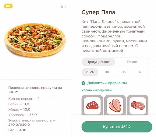 Une pizzeria populaire à Rostov avec des prix avantageux et des promotions fréquentes. Vous pouvez commander une pizza ici à la fois sur le site Web de l'entreprise et via une application de marque. Il y a un menu pour enfants, des ensembles combinés avec des boissons et plusieurs options de restauration. L'entreprise a un système de fidélité : 5% de chaque achat est reversé aux clients sous forme de dodocoins, qui peuvent ensuite être dépensés pour payer les commandes. C'est l'une des meilleures offres à Rostov-sur-le-Don. La livraison partout dans la ville est gratuite, la pizza, à en juger par les critiques, est apportée encore chaude. Certes, la nourriture n'est pas toujours livrée rapidement. Dans certaines succursales de l'entreprise, l'attente prend plusieurs heures, d'où la faible note.