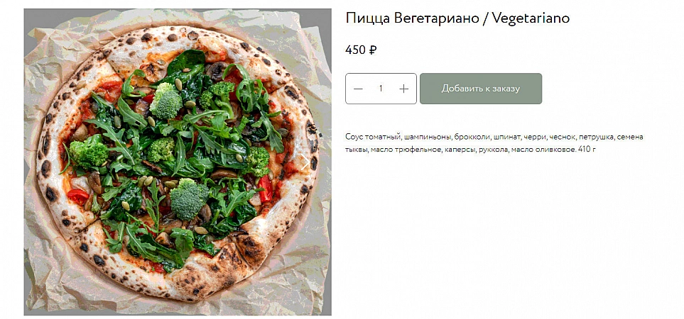 Ici, vous pouvez commander une pizza avec n'importe quelle garniture. Le nombre maximum d'ingrédients est de 10 pièces.