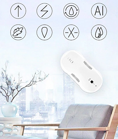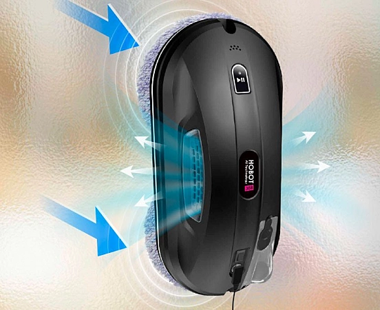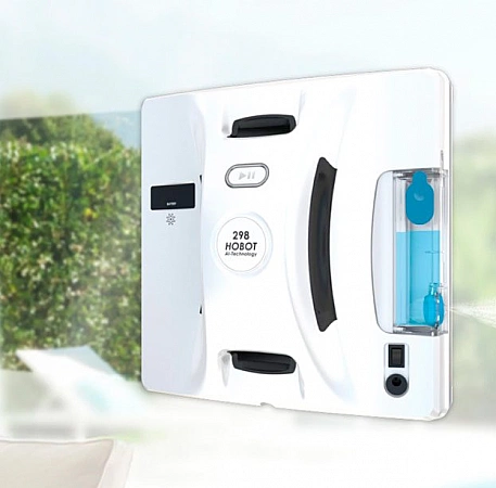 هذا هو النموذج الأول من HOBOT بمحرك بدون فرش. أصبحت أكثر موثوقية وأكثر هدوءًا. الجهاز مثير للاهتمام أيضًا لأنه مزود بخزان مياه وفوهات فوق صوتية يدخل من خلالها السائل إلى الزجاج على شكل ضباب. الخزان صغير - الحجم 50 مل. ولكن بسبب الرش الجيد ، يكفي إعادة التزود بالوقود لغسل نافذة غير متسخة جدًا بمساحة 25 مترًا2. الروبوت يعمل بشكل نظيف ، لكنه لم يتعلم قط حك الزوايا حتى يلمع. ما يرضي هو التنقل المحدث والعديد من أوضاع التشغيل. يمكنك التحكم فيه من جهاز تحكم عن بعد أو هاتف ذكي ، لكن التطبيق يبدأ فقط مع تمكين تحديد الموقع الجغرافي. ولا تنس شحن البطارية كل نصف ساعة من العمل ، وإلا فلن يتم تشغيل الروبوت.
