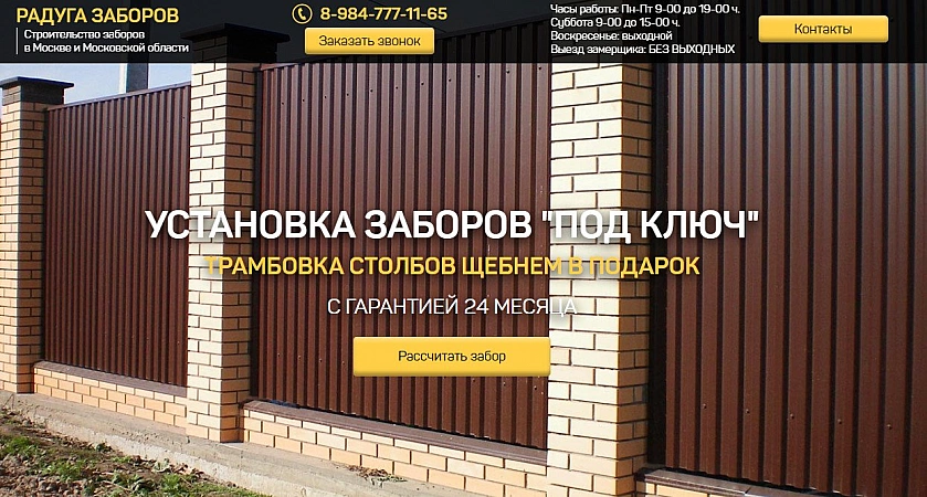 شركة صغيرة متخصصة في تركيب الأسوار بأي تعقيد. تعمل فرق الماجستير في موسكو ومنطقة موسكو ، وتغادر في أي وقت مناسب للعميل.ولكن فقط في ظل ظروف جوية جيدة: في المطر ، لا يتم تنفيذ العمل ، وهو ما هو مكتوب في العقد. يسلط العملاء الضوء على كرم الشركة الخاص: العبث بالحجارة المكسرة مجاني تمامًا هنا. هذه مجرد جودة العمل في بعض الأحيان في الواقع تبين أنها 3-كو. يرتكب بعض الأسياد المؤسف أخطاء أثناء تثبيت الهيكل ، بسبب ظهور عيوب أثناء تشغيل السياج. لكن في الآونة الأخيرة ، عملت الشركة على حل هذه المشكلات بسرعة. عندما يتصل العميل بقسم المطالبات ، يرسل المدير بسرعة متخصصين للتخلص من المشاكل.