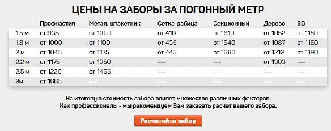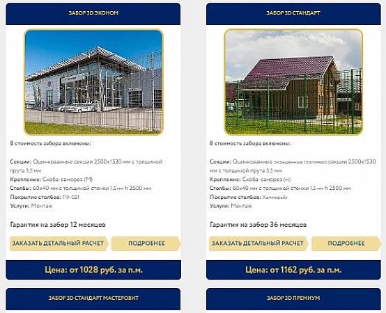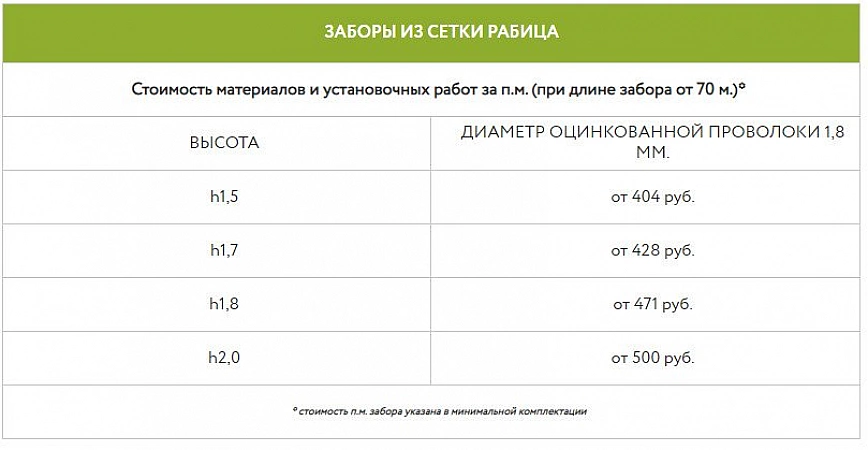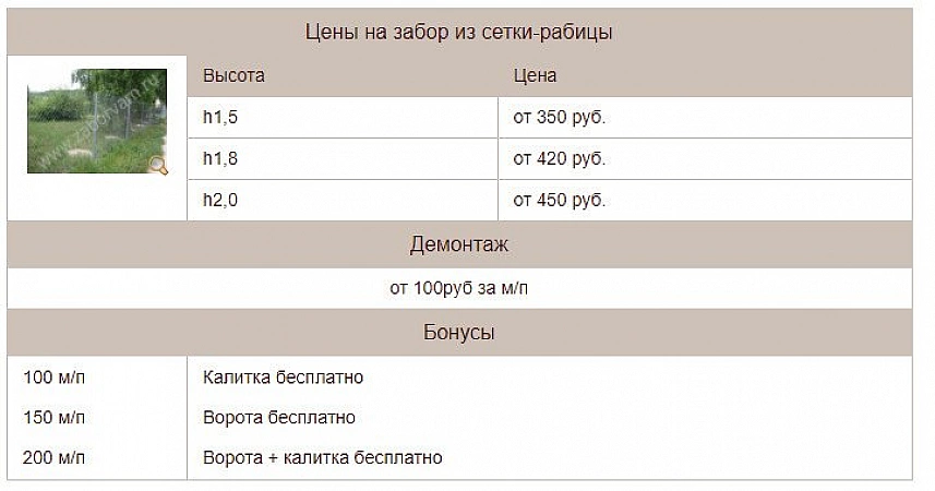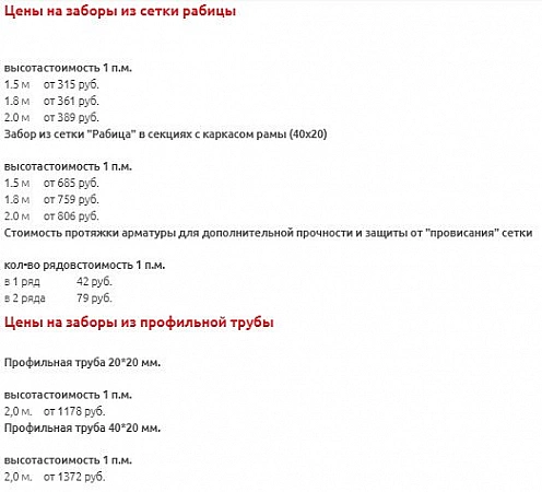 تبيع الشركة الأسوار وتقوم بالتركيب بأسعار مناسبة تمامًا. في الوقت نفسه ، فإن تكلفة العمل لها ما يبررها تمامًا من خلال جودتها: لا توجد عمليًا مراجعات سلبية حول الشركة.