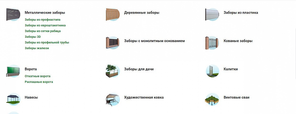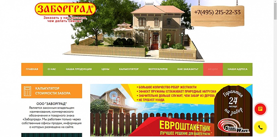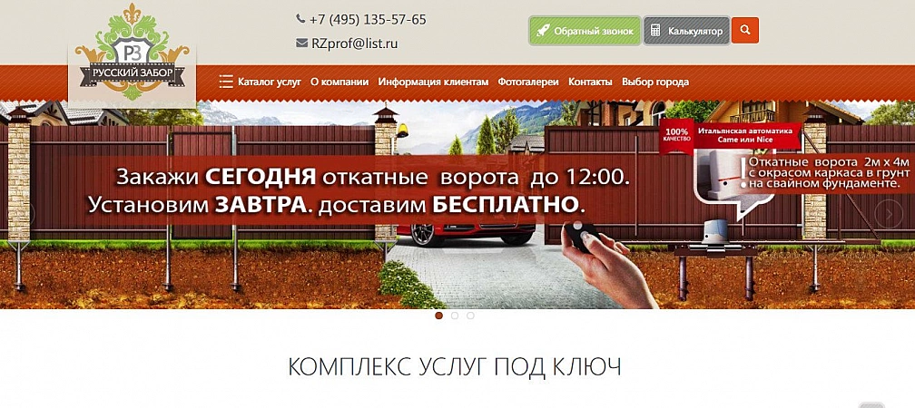 شركة لتركيب الأسوار من الكرتون المضلع والخشب وشبكة ربط السلسلة وسياج اعتصام معدني وبولي كربونات وطوب. تعمل أيضًا في تحسين قطع الأراضي الشخصية في موسكو ومنطقة موسكو ، وتركيب الهياكل المزورة ، والمراقبة بالفيديو ، والأسوار الخرسانية المتجانسة. تتميز فرق الشركة بسرعة العمل العالية ، وتكلفة الخدمات هنا من أقلها في العاصمة. لا يوجد العديد من المراجعات حول السياج الروسي مثل الشركات الأخرى. ولكن بناءً على الردود المتاحة ، فإن هذه الشركة ليس لديها عمليا أي عيوب. السلبية الوحيدة هي العمال غير الأكفاء. صحيح أنهم يواجهون الحد الأدنى من العملاء.