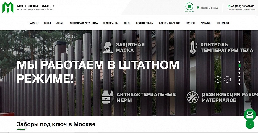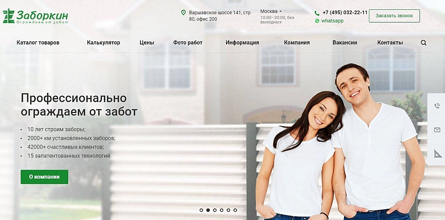 ثاني أشهر شركة متخصصة حصريًا في إنتاج وتركيب الأسوار.في كتالوج الشركة ، يمكنك العثور على كل من حلول الميزانية المصنوعة من الألواح المموجة المجلفنة ، ووصلة السلسلة ، وسياج الاعتصام ، بالإضافة إلى التصميمات المتميزة ذات البوابات المنزلقة على أعمدة من الطوب. وفقًا للمراجعات ، يقوم أسياد أسوار موسكو خلال يوم واحد بتثبيت أسوار جاهزة دون فقدان المواعيد النهائية. ومع ذلك ، ليس دائمًا. اعتمادًا على الفريق والوقت من العام ، يمكن أن تزيد شروط العمل بشكل كبير. لحظة أخرى غير سارة - جودة المواد تترك في بعض الأحيان الكثير مما هو مرغوب فيه. صحيح أن الشركة دون مشاكل تصحح أوجه القصور الحالية بموجب الضمان.