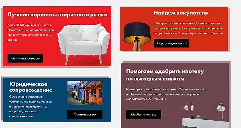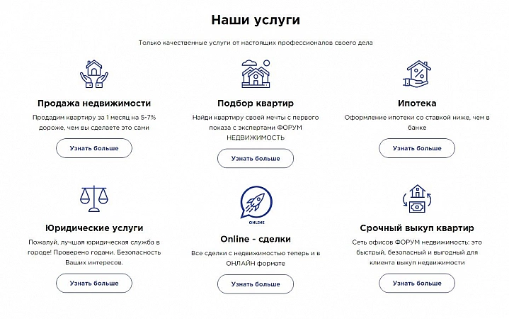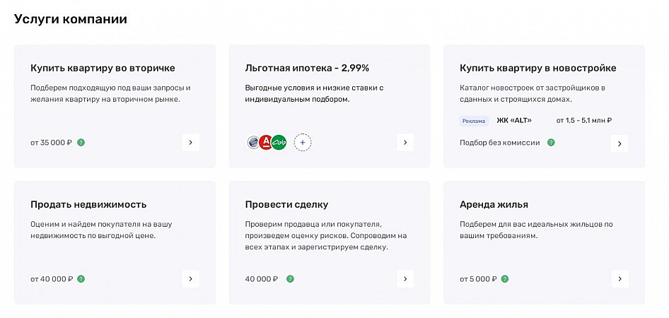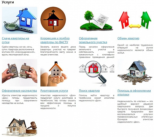 - مجموعة كاملة من الخدمات (الشراء / البيع ، الإيجار ، التبادل ، الرهن العقاري ، إلخ.)