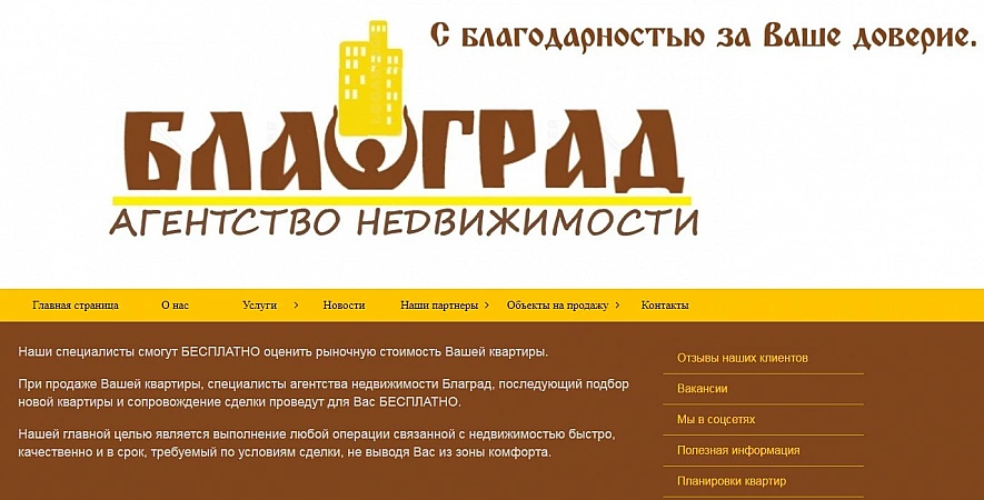 وكالة "بلاغراد" متخصصة في بيع العقارات. هنا يظهرون الأداء العالي ويأخذون في الاعتبار جميع رغبات العملاء.