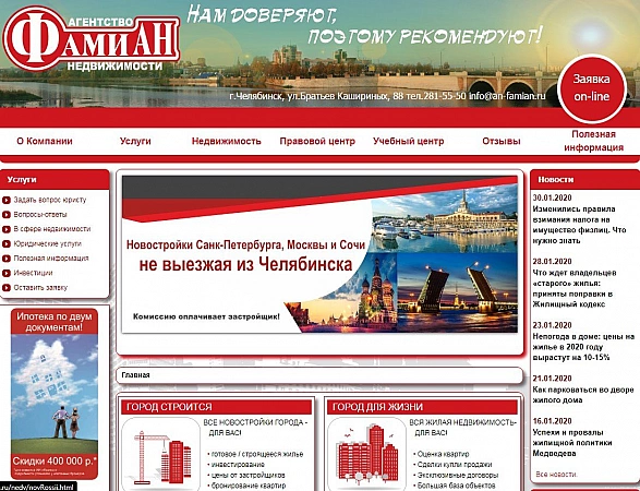 وكالة Famian العقارية لديها أقل عدد من المراجعات السلبية ، وجميع العملاء تقريبًا راضون عن عمل الشركة ، وإذا لزم الأمر ، عد مرة أخرى. كانت المنظمة في السوق لفترة طويلة وتراقب سمعتها بعناية. تقدم الوكالة اليوم مجموعة كاملة من الخدمات العقارية وتغطي جميع المجالات ذات الصلة. تقوم Famian بتدريب وكلاء معتمدين لشركات أخرى. يمكن إجراء أي معاملة عبر الإنترنت. يعمل اختصاصيو Famian بسرعة ويأخذون في الاعتبار جميع احتياجات العميل ، ولكن في بعض الأحيان تتأخر المواعيد النهائية. دخلت بقية الوكالة بجدارة في تصنيف الأفضل.