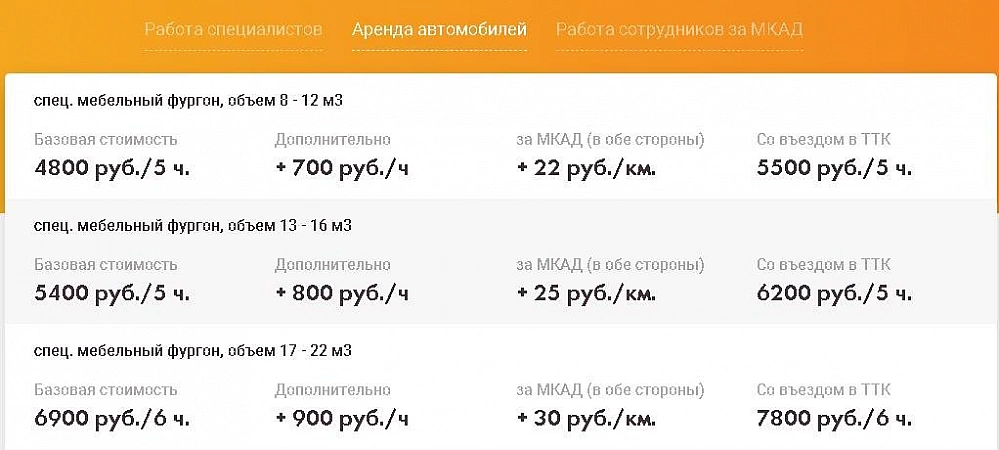 شركة خدمات نقل شهيرة تعمل في موسكو ومنطقة موسكو. عروض منظمة الانتقال من شقة ، مكتب ، منزل ريفي. تعمل الشركة منذ عام 2000 ، وفروعها مفتوحة في أربع مدن روسية. تعمل ليس فقط في التحميل والنقل ، ولكن أيضًا في تفكيك الأثاث والتعبئة والتخزين المؤقت في مستودعاتها الخاصة. مفتوح على مدار الساعة طوال أيام الأسبوع ، تختلف أسعار النهار والليل. عند صياغة العقد ، تحصل الشركة على دفعة مسبقة بنسبة 100٪ ، ولكن يمكنها الدخول في مركز العميل وتقديم الدفع بنسبة 50/50. التعليقات حول الشركة ليست سيئة.يلاحظ العملاء سرعة ودقة العمل والتنظيم الجيد ولطف الموظفين. الصورة العامة أفسدتها الشكاوى الفردية ، والتي تشير إلى حدوث عطل في المعدات أو بعض الأشياء في عملية النقل. لا يشعر الجميع بالراحة لأن الحد الأدنى من الوقت للنقل هو 5 ساعات.