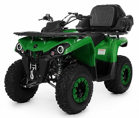 فائدة اقتصادية ATV بمحرك رباعي الأشواط بسعة 23 قوة. قادرة على الوصول إلى سرعات تصل إلى 85 كم / ساعة. تعتبر معدات ATV خطيرة - فهي مجهزة بتعليق محقن ولوحة قيادة LED عن بعد وحماية سلسلة القيادة وامتصاص الصدمات مع تحميل مسبق وضخ قابل للتعديل. يسمح لك الحجم المتزايد لمحرك الاحتراق الداخلي بأخذ راكب معك. على اليمين تحت يد السائق يوجد ذراع تبديل الوضع. الحركة كبيرة ومرنة إلى حد ما ولكنها ليست "بلوطية". بداية كهربائية.