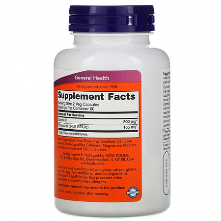 إذا كان هدفك من تناول الكيرسيتين هو تعزيز نظام المناعة لديك أو علاج الحساسية ، فعليك التفكير بجدية في تناول مكمل من Now Foods. بالإضافة إلى العنصر النشط الرئيسي ، فإنه يحتوي على البروميلين ، مما يعزز عملها. على خلفية أخذ الجسم يكتسب القوة لمقاومة الفيروسات والبكتيريا ، وتزول الحساسية الموسمية دون استخدام مضادات الهيستامين الكيميائية. تعتبر بقية الإيجابيات أداة شائعة بين المشترين مع Iherb ، وقد ترك الكثير من المراجعات الإيجابية حولها. ولكن بسبب محتوى البروميلين ، لا ينبغي أن يؤخذ من قبل الأشخاص الذين لديهم حساسية من الأناناس ، يجب أن تكون حذرًا عند التعامل مع التهاب المعدة.