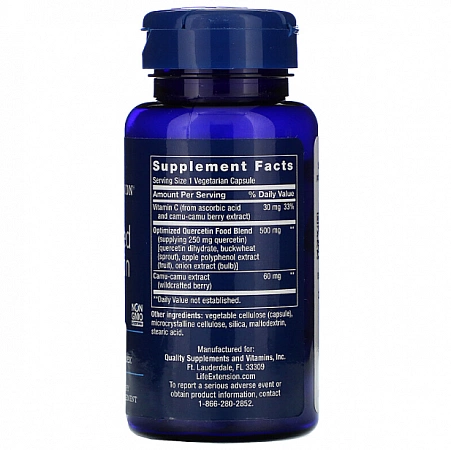 مستحضر مركب مثير للاهتمام ، بالإضافة إلى الكيرسيتين ، يحتوي على فيتامين سي ، ومستخلص كامو كامو ، والبصل ، وبوليفينول التفاح. مجتمعة ، فهي جيدة بشكل خاص في تعزيز المناعة ، وتساعد على تجنب الفيروسات ، وفي حالة المرض ، تسريع الشفاء. كما أنها تحافظ على مستويات الكوليسترول المثلى ، ولها تأثير جيد على نظام القلب والأوعية الدموية ، ويمكن استخدامها بدلاً من مضادات الهيستامين للحساسية المزمنة الموسمية.يتم إنتاج المنتج في كبسولات ، وتكفي العبوة لمدة شهر إلى شهرين ، اعتمادًا على الجرعة المختارة ونظام الجرعات.