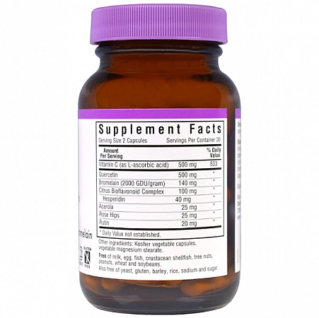 بالإضافة إلى الكيرسيتين ، يحتوي هذا المكمل أيضًا على مواد مفيدة أخرى - البروميلين وفيتامين سي والمستخلصات النباتية. له تأثير معقد على الجسم.