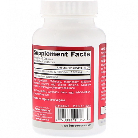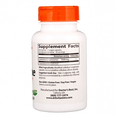 كبسولات Doctor's Best Carnosine أصغر قليلاً من المكملات الأخرى التي تحتوي على نفس العنصر النشط. عليك أن تأخذهم قطعتين مرة واحدة في اليوم. إنه مريح للغاية.