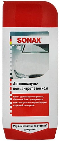 شامبو السيارة الألماني بتركيز عالٍ من شمع كرنوبا الطبيعي يستخدم في المعالجة اليدوية للسيارة ، ويمنح السيارة نظافة مثالية ولمعاناً جذاباً. بعد العلاج بهذا العامل ، يتم تشكيل فيلم واقي على الجسم يمنع الغبار من الالتصاق ويسمح لك بالحفاظ على الخصائص الجمالية لأعمال الطلاء لأطول فترة ممكنة. يوصي المتخصصون في مركز الخدمة باستخدام سوناكس ليس فقط من أجل الترميم ، ولكن أيضًا لغسيل المواد الحافظة. تجعل تقنيات النانو الفريدة والكفاءة العالية المنتج أحد أفضل أنواع شامبو السيارات بالشمع.
