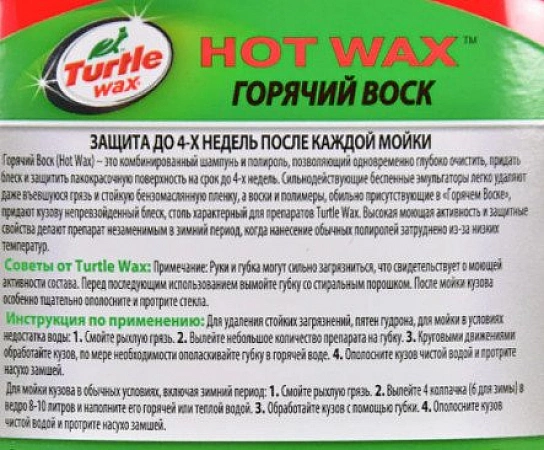 له أطول تأثير ، والذي يستمر حتى 4 أسابيع. ووفقًا لأصحاب السيارات - حتى 5 أسابيع. شامبو السيارة ينظف الجسم بلطف من الأوساخ ، كما يمكن استخدامه كملمع. مع إعطاء السطح لمعانًا ، يتأقلم مع 100٪. لكن بالنسبة للتلوث الخطير ، لا ينبغي استخدامه: من الأفضل تطبيق المنتج بعد الغسيل بدون تلامس. لذلك ستكون النتيجة أكثر وضوحًا ، وسيكون الفيلم الواقي متينًا. من بين أوجه القصور ، يميز المستخدمون رائحة غريبة وتركيبة "قذرة" للغاية. عند استخدام Turtle Wax Hot Wax ، يجب أن تكون مستعدًا لحقيقة أنه يجب التخلص من الإسفنجة وغسل يديك جيدًا بعد معالجة الجسم.