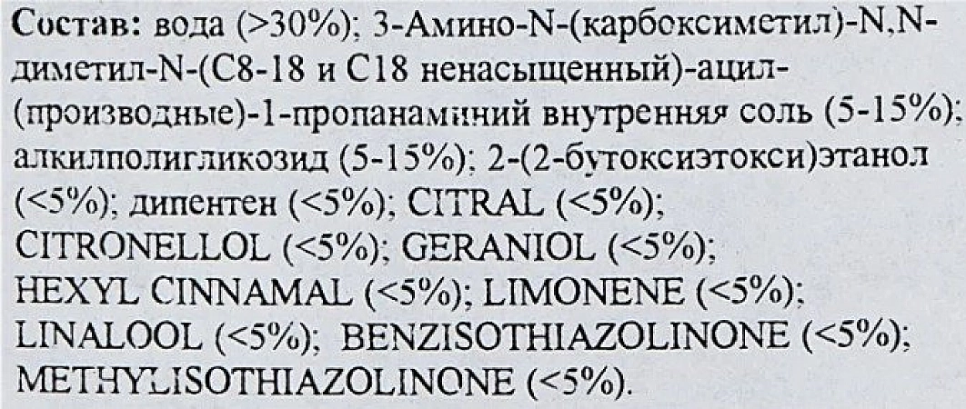 مصنوعة من الشمع و tensides. تحمي الأداة الجسم من الآثار السلبية للعوامل البيئية عن طريق إنشاء طبقة غير مرئية ولكن متينة من الشمع. كتبت المراجعات أنه بعد استخدام هذه الأداة ، يتألق الجسم بشكل جميل وتبدو السيارة وكأنها جديدة.شامبو السيارة سهل الاستخدام ، ويستهلك بدون فائض حتى على الرغم من تناسق السائل ، يتم شطفه بدون خطوط ، تاركًا وراءه غشاء كاره للماء. العيب الخطير الوحيد هو عدم التوافق مع درجات الحرارة المنخفضة. أيضًا ، لا تنصح الشركة المصنعة بتطبيق التركيبة على جسم ساخن ، وغسل السيارة تحت أشعة الشمس الحارقة: قد تظهر البقع واللطخات على الطلاء.