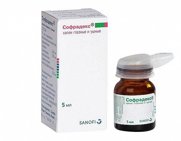 Sofradex - قطرات بتركيبة مشتركة تعتمد على ثلاثة مكونات ، يساهم كل منها في العلاج الفعال للشعير.