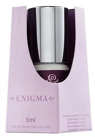 غراء الكون من شركة Enigma المعروفة مثالي للمحترفين والحرفيين ذوي الخبرة المتوسطة. تتميز بسرعة عقبة سريعة إلى حد ما ، ولكن ليست فورية ، لذلك سيكون من السهل عليك إصلاح أي عيب. تتحمل الأداة التغيرات في درجة الحرارة والرطوبة ، لذا فهي مريحة للغاية للعمل معها. كما أنها مشهورة بجودتها الممتازة - فهي تصلح الرموش بشكل آمن ، وترتدي جيدًا ولا تسبب ردود فعل تحسسية لدى كل من العملاء والسادة. ومع ذلك ، عند الاستخدام ، يجب أن تكون حذرًا ، حيث يمكن أن يلتصق الفوهة بالأنبوب وسيكون من الصعب جدًا فتحه.
