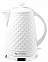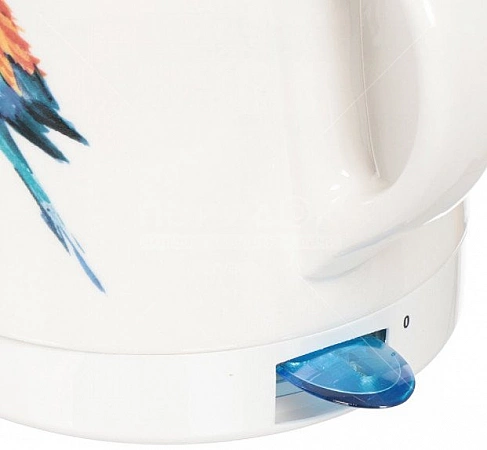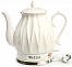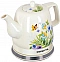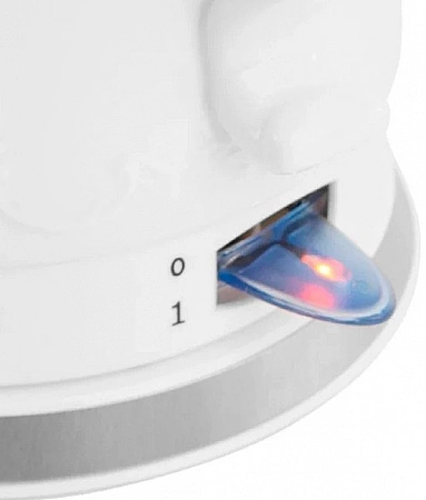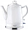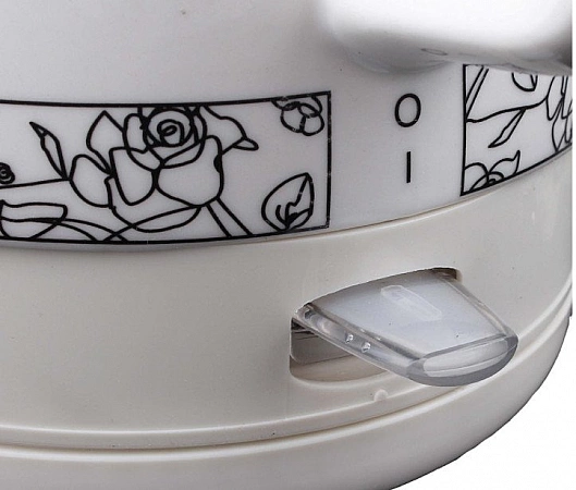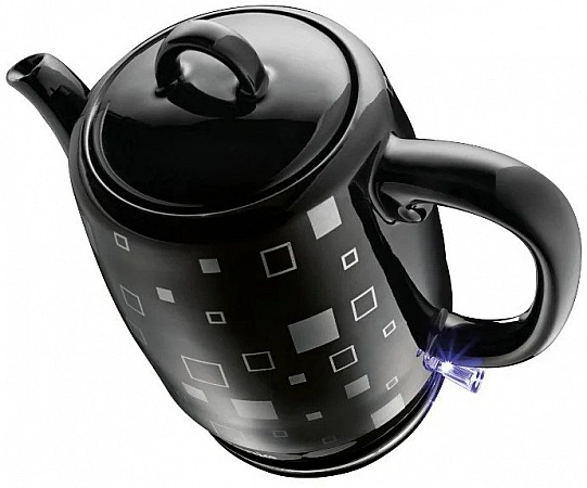 غلاية كهربائية من السيراميك مع تخزين مناسب للأسلاك. يبدو أنيقًا ومكلفًا: يناسب تمامًا أي مطبخ بتصميم داخلي كلاسيكي. السمة الرئيسية للنموذج هي وجود غطاء نصف قطره يمنع تكوين كمية كبيرة من البخار. بفضله يمكن استخدام الغلاية مباشرة أسفل خزائن المطبخ دون خوف من تدمير الواجهة. العيب الوحيد المهم في الجهاز هو نسبة الزواج الكبيرة. يصادف المستخدمون أحيانًا حالات بغطاء متدلي وعنصر تسخين منحني وعيوب أخرى في المصنع. لكن على الرغم من الزواج ، لا يزال هذا النموذج شائعًا.