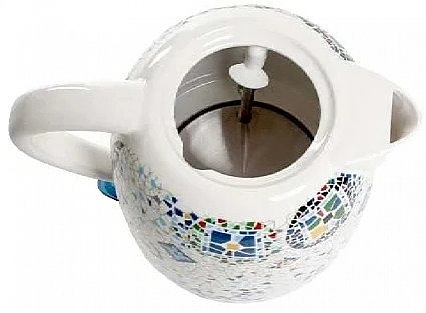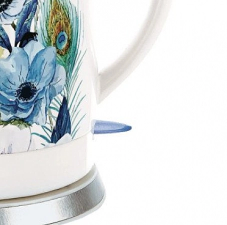 هذه الغلاية الكهربائية الخزفية الجميلة تبدو رائعة المظهر للغاية. لن تترك زخرفة الفسيفساء الساطعة أي متلقي للهدية غير مبال ، وتكلف ميزانية كبيرة.