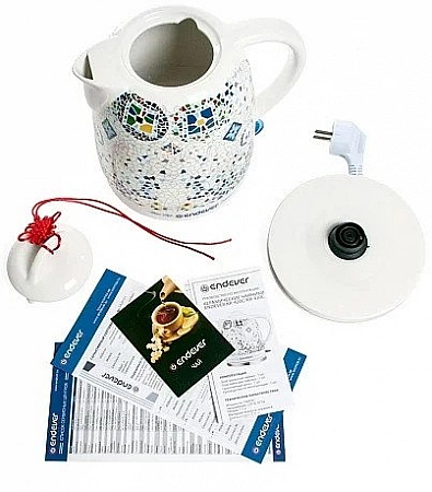 غلاية كهربائية في علبة السيراميك الأصلية. يختلف في الأحجام المدمجة والتجميع الموثوق.يحتوي الطراز على مؤشر ضوئي ، وحماية ضد السخونة الزائدة عند التشغيل بدون ماء ، بالإضافة إلى كابل بطول مريح (1 متر). بالإضافة إلى ذلك ، تم تجهيز الغلاية الكهربائية بفلتر غير قابل للإزالة. المكونات الداخلية مصنوعة من الفولاذ المقاوم للصدأ والسيراميك ، مما يحد من دخول الروائح الغريبة إلى الماء. لا يضيف الحجم الصغير للجهاز والغطاء المحكم للغاية ، والذي يصعب إزالته ، بالطبع ، أي مزايا للغلاية. ولكن يمكنك غض الطرف عن أوجه القصور هذه ، نظرًا لوظائف النموذج وأمانه وتصميمه وتكلفته.