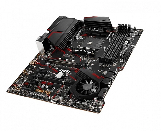 لوحة ألعاب قوية لمعالجات AMD Ryzen. يدعم ما يصل إلى 128 جيجابايت من ذاكرة الوصول العشوائي على أربع فتحات بتردد تشغيل يصل إلى 4000 ميجاهرتز ، ومن الممكن تركيب بطاقتي فيديو ، و 14 مرحلة طاقة وستوفر قائمة BIOS المطورة جيدًا خيارات قصوى لأجهزة رفع تردد التشغيل. نلاحظ أيضًا مجموعة غنية من منافذ USB: 9 على اللوحة نفسها و 10 على اللوحة الخلفية. تعمل فتحات توسيع PCI من خلال ناقل PCI Express 4.0 عالي السرعة ، والذي لا يقل أهمية عن بناء كمبيوتر ألعاب متطور. يهيمن على قائمة أوجه القصور عدد صغير من الموصلات لتوصيل مراوح تبريد إضافية وتصميم غير ناجح للمبدد الحراري في فتحة M.2 ، مما يخلق فجوة بين محرك SSD والمبدد الحراري نفسه.