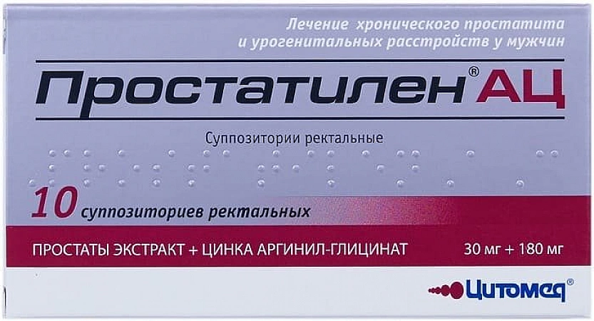 Prostatilen AC - تحاميل تعتمد على خلاصة البروستاتا ، بالإضافة إلى أنها تحتوي على الزنك ومجموعة من الأحماض الأمينية. لا تحتوي التركيبة على نظائرها ، وقد حصلت على براءة اختراع من قبل الشركة المصنعة ، وتأكدت فعاليتها من خلال الدراسات السريرية.