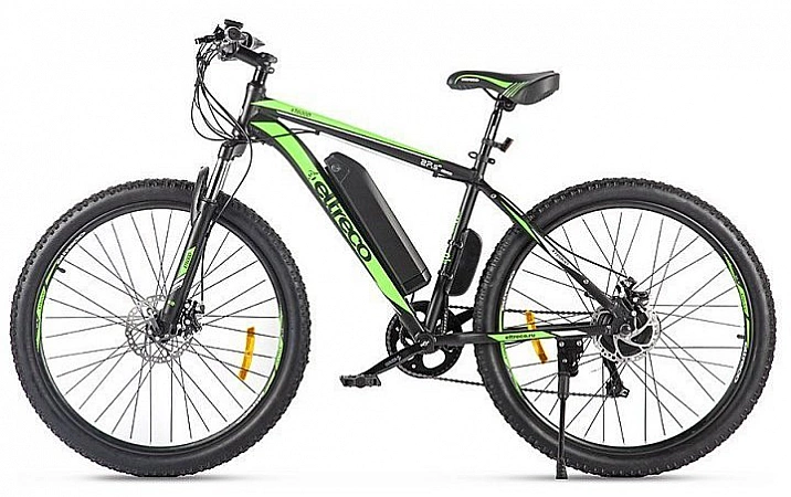 لا يزال من الممكن تسمية هذه الدراجة الكهربائية بالميزانية. لكن الزيادة في الحجم لا تزال تؤثر على قيمتها. في الواقع ، هذه دراجة جبلية ، إطارها مصنوع من الفولاذ. لم تتخلص الشركة المصنعة حتى من المفتاحين ، حيث تقدم 21 سرعة. توجد فرامل قرصية على كلا العجلتين ، وتعمل بمساعدة الكابلات. أما بالنسبة للبطارية فقد تمت زيادة سعتها إلى 8 آه. ولكن حتى هذا يكفي فقط لمسافة 30-40 كم. يجب أن يكون هذا الاحتياطي الصغير من الطاقة مرتبطًا بكتلة 25 كيلوغرامًا من الهيكل. لحسن الحظ ، إذا نفدت طاقة البطارية ، فلن يتدخل أحد في الوصول إلى نقطة النهاية باستخدام الدواسات التقليدية.