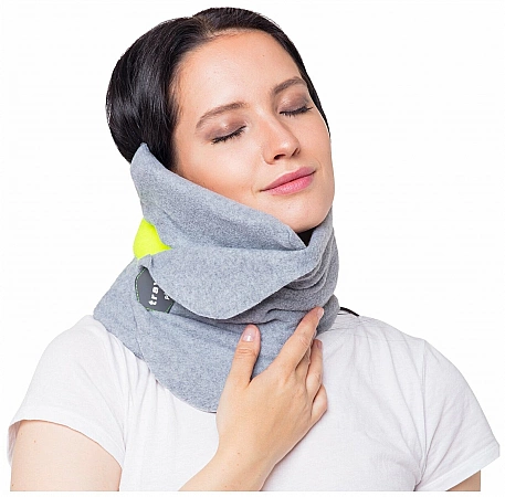 الوسادة الأكثر أصالة في تصنيفنا. ظاهريًا ، يبدو وكأنه وشاح ، وهذه هي ميزته الرئيسية. هذا الملحق أكثر إحكاما من الوسادة ، فهو يشغل مساحة صغيرة في الحقيبة. الإضافة التالية هي القدرة على النوم في أكثر الظروف غير المريحة. يتم تثبيت وشاح الوسادة على الرقبة والجزء الخلفي من الرأس بحيث يمكنك الاتكاء عليه ليس فقط للخلف ولكن أيضًا على الجانبين. بشكل تقريبي ، إنه يحل محل كتف صديق. الميزة الثالثة هي نسيج الصوف الدافئ الذي يغطي الرقبة بالكامل ويدفئها أثناء النوم. بالطبع ، هذا الخيار ليس للجميع. هنا تنقسم آراء المستخدمين.وجد البعض أن هذا النموذج مريح وعملي أكثر من الوسادة العادية. لا يمكن للآخرين التعود على ذلك.