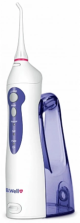 أحد أشهر الموديلات المحمولة ، يمتلك B.Well خزان مياه كبير الحجم. الآن يكفي التنظيف الكامل لتجويف الفم وتدليك اللثة. في الوقت نفسه ، يضمن الشكل المريح للري استخدامه المريح.يتم تضمين فتحتين قياسيتين فقط في المجموعة - الجهاز أكثر ملاءمة لأولئك الذين ليس لديهم أقواس وتيجان وجسور مثبتة. هناك 3 أوضاع عمل: لينة لمن يعانون من حساسية اللثة ، وعادي للحصول على الأداء الأمثل في الاستخدام اليومي ، ونبض لتدليك اللثة. يحب العملاء قوة الجهاز واستقلاليته الطويلة وخزانه الكبير.