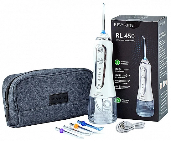 جهاز محمول متعدد الاستخدامات مناسب للتنظيف اليومي للمساحات بين الأسنان ، وكذلك للعناية بالفم عند ارتداء المشابك والتيجان والغرسات. هناك 5 فوهات في المجموعة: 2 معياري ، بالإضافة إلى اللثة واللسان وتقويم الأسنان. يحتوي جهاز الري على ضغط نفاث مثالي موصى به من قبل أطباء الأسنان - 5 أوضاع في حدود 130-760 كيلو باسكال للتنظيف الدقيق والمكثف لتجويف الفم وتدليك اللثة. يحب المشترون الجمع بين سعر وجودة أجهزة الري وقوة ضغط المياه وسهولة الاستخدام. لكن البعض يشتكي من التفريغ السريع للجهاز ، على الرغم من أن الشركة المصنعة تعد بما يصل إلى أسبوعين من العمل. مع مؤقت لمدة دقيقتين وعلاجين في اليوم ، يكون هذا ما يقرب من 55-56 دقيقة.