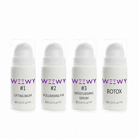 مجموعة احترافية لعمل رموش كثيفة وكثيفة. لدى WEEWY عدد من المزايا ، والتي غالبًا ما تكون اختيار الأسياد. أولاً ، يحتوي المنتج على عدد كبير من المكونات المفيدة في التكوين. من بينها فيتامينات A ، E ، الجلسرين ، البوليفينول ، البيتين ، زيت الإيلنغ ، مستخلصات السوسن ، الورد الدمشقي والكيراتين المتحلل الذي يخترق أدق الشعيرات. ثانيًا ، يعمل التكوين أسرع عدة مرات من نظائرها ، وهو أمر مهم بشكل خاص مع تدفق كبير من العملاء. ثالثًا ، تشتمل المجموعة على مادة البوتوكس ، التي تضيف حجمًا أكبر للرموش. بالإضافة إلى ذلك ، يتم تعبئة التركيبة في حاويات بها موزعات فراغ ، مما يطيل من مدة صلاحيتها إلى عامين.
