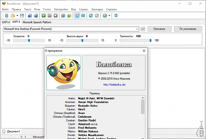 بالنسبة إلى البرنامج الذي يتم توزيعه مجانًا ، فإن "Balabolka" متعدد الوظائف بشكل مدهش: فهو لا يترجم الصوت إلى نص فحسب ، بل يحسّنه أيضًا بحيث لا يرتكب "المتحدث" الافتراضي أخطاء نموذجية للكلام الآلي. على سبيل المثال ، يقوم البرنامج تلقائيًا بتصحيح التهجئة ويزيل جميع الواصلات من النص إلى سطر آخر ، مما يسبب ترددًا طويلاً. كما أنه من الملائم جدًا العمل معه: ما عليك سوى تحميل النص من الملف النهائي إلى البرنامج (يتم دعم جميع التنسيقات التي تحتوي على نص تقريبًا) وانتظر حتى يقوم المحرك بمعالجته. يمكن حفظ ملف الصوت الناتج على الفور على جهاز كمبيوتر أو معالجته مسبقًا باستخدام حزمة Microsoft Speech API لوظائف الكلام لتغيير سرعة الصوت والجرس - أي أن Balabolka يعمل بهدوء مع البرنامج الافتراضي.