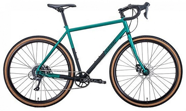 مثال غريب لا يخشى الذهاب إلى الحصى. الحقيقة هي أن عجلات 28 بوصة ، المألوفة لدراجات الطرق ، تستخدم هنا ، لكن في هذه الحالة يرتدون إطارات عريضة إلى حد ما مع مداس عدواني. وفقط عدم وجود شوكة تعليق يسمح لك بفهم أنه لا يجب عليك البقاء على سطح الطريق هذا لفترة طويلة. إذا تحركت على الأسفلت الأملس ، فلن تشعر بالتعب الشديد بالتأكيد. حتى يديك ، لأنه يمكن تحريكهما بسهولة على طول ما يسمى ب "القرون".