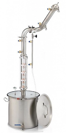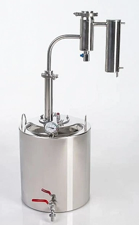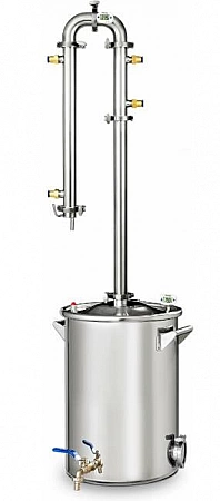يعد الطراز الجديد نسبيًا جيدًا للانتقال من جهاز التقطير القياسي باستخدام جهاز بخار جاف إلى معدات أكثر خطورة. هذا هو عمود طبق الغطاء مع وحدة اختيار السائل. يمكنك صنع نواتج عطرية كلاسيكية والحصول على الكحول النقي. العمود قابل للطي ، عن طريق تغيير التصميم ، تم تكوينه لأنماط تشغيل مختلفة. لتقطير الهريس إلى كحول خام ، يتم توصيل ثلاجتين بالمكعب. لا يتم استخدام عمود اللوح النحاسي ووحدة أخذ العينات. في وضع بوتستيل ، يكون السباق سريعًا. يمكنك إعداد وضع قياسي باستخدام مكثف راجع أو إضافة مبرد لاحق إلى مخطط UO. حسب التصميم ، فإن جودة المنتج عند إخراج لغو القمر لا تزال تناسب المبتدئين والمستخدمين ذوي الخبرة. السعر كبير ، لكن التصميم عالمي. يمكن تحديد حجم المكعب من أربعة خيارات: 25 ، 30 ، 37 و 50 لترًا.