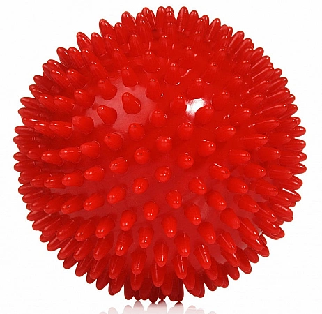 كرة التدليك ذات المسامير التي يبلغ قطرها 9 سم مخصصة للبالغين والأطفال. مصنوعة من البولي فينيل كلورايد. يمكن استخدامه لتنمية المهارات الحركية الدقيقة والتنسيق ، ولتحفيز النهايات العصبية. بالإضافة إلى ذلك ، يوصى باستخدامه لإعادة التأهيل بعد الإصابة بأمراض وإصابات خطيرة. يصلح لتمرين المناطق المختلفة من اليدين والقدمين والبطن والوركين وغيرها. غالبًا ما يشارك أثناء العلاج بالتمارين والعلاج الحركي. يوصي الخبراء أيضًا باستخدامه لمتلازمات النفق ، وتقلصات العضلات المختلفة أو انخفاض ضغط الدم. كما أظهر فعاليته في التعافي من السكتة الدماغية أو الإصابات المختلفة أو بعد العمليات. يتم جلب فائدة كبيرة للأطفال الذين يعانون من ضعف في النمو الحركي النفسي. بعمل تدليك للقدمين والنخيل بهذه الكرة يمكنك زيادة المناعة وتحسين حالة الجسم ككل. بالإضافة إلى ذلك ، ينصح بهذا الموديل لمحاربة الوزن الزائد والسيلوليت. لا تستخدم في المناطق المتضررة من الجلد.