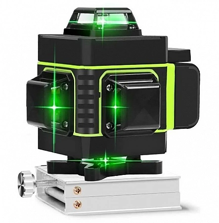 When buying a 4D level, you often have to take accessories to it. But not with this model. This is a 16 line laser level. The rays are green, very bright, but only at a short distance. The manufacturer knows about this, so he completes the instrument with special glasses, in which all lines are easily read at any distance. The spirit level is self-leveling and responds to a 3-degree offset. He will notify you of this by sound or light. Very convenient and eliminates the possibility of unnecessary errors. By the way, the standard accuracy was set at around 0.2 millimeters. A little for a combined type, but quite acceptable. At 30 meters there will be no flaws at all.