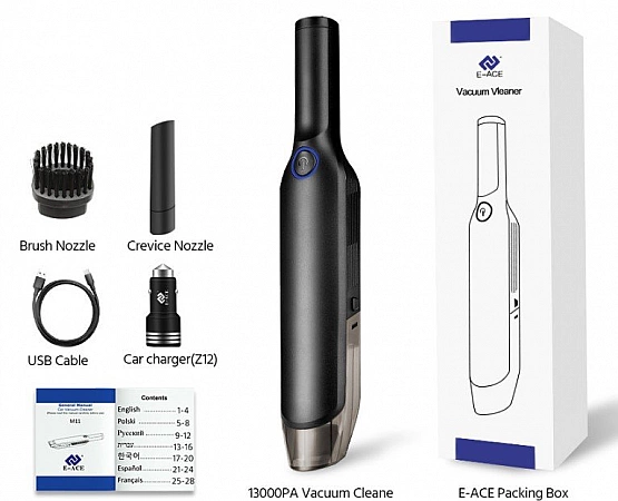 E-ACE M11 se posiciona como aspirador de coche, aunque también se pide para el hogar. Este modelo manual se opera con un solo botón, funciona de manera silenciosa y precisa. La potencia de succión es casi la más alta de la categoría, el dispositivo puede hacer frente incluso al pelo de los animales. Hay varias versiones en Aliexpress con diferente potencia y un juego de baterías. La opción más económica es una aspiradora con cable que debe conectarse al encendedor de cigarrillos. Todas las demás versiones no requieren acceso a la red. Los clientes elogian el dispositivo en las reseñas por su diseño ergonómico, gran contenedor de polvo y luz de fondo brillante. El mango es cómodo y no resbala en las manos, el filtro no se obstruye. Hay dificultades con la fijación de los cepillos, pero esto no es crítico.
