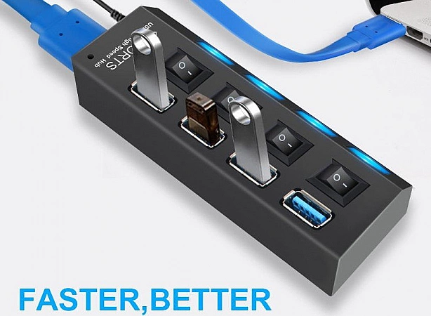 Con un concentrador USB, puede transferir información rápidamente entre unidades flash, conectar hasta 7 dispositivos a una PC al mismo tiempo.