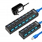 El concentrador USB Plug & Play con Aliexpress está diseñado para funcionar con varias unidades al mismo tiempo. Disponible en dos versiones: estándar con 4 entradas y extendida con 7 puertos.Una característica distintiva de este dispositivo es un diseño elegante, que consiste en una combinación de colores neutros y fríos: negro y azul. Cada puerto tiene una luz de fondo individual, que refleja el modo de funcionamiento. Además, puede habilitar y deshabilitar puertos usando interruptores de palanca especiales en la carcasa. El dispositivo es compatible con Mac OS 9.1 y Windows 7 y sistemas operativos superiores. El tamaño compacto de la versión estándar hace que sea fácil llevarlo contigo cuando viajas, mientras que la versión extendida se adapta perfectamente a cualquier espacio de oficina.