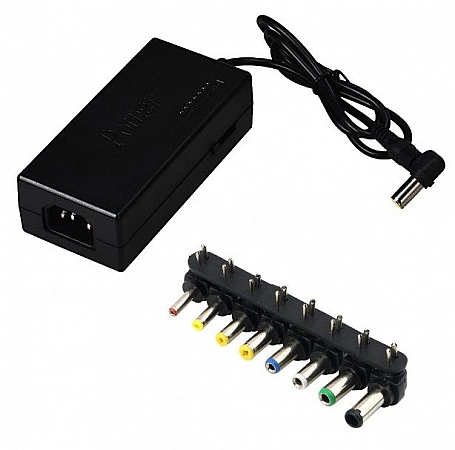 La carga de una computadora portátil se realiza con el mayor cuidado y habilidad. El kit incluye un gran conjunto de adaptadores para varios puertos de los modelos más populares. Hay ocho conectores intercambiables. Voltaje de entrada nominal: CA 265 V o CA 240 V, rango de voltaje de entrada de vibración: CA 95 V-110 V. A pesar de la mayoría de las críticas positivas, los compradores informan que el módulo cruje en algunos lotes y los conectores del adaptador están dañados. Se recomienda que inspeccione el artículo cuidadosamente antes de recibirlo.