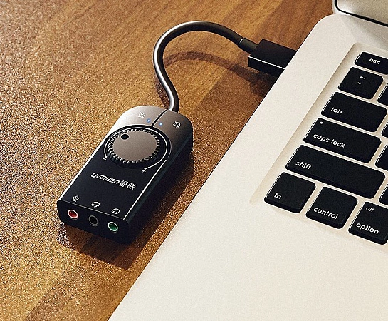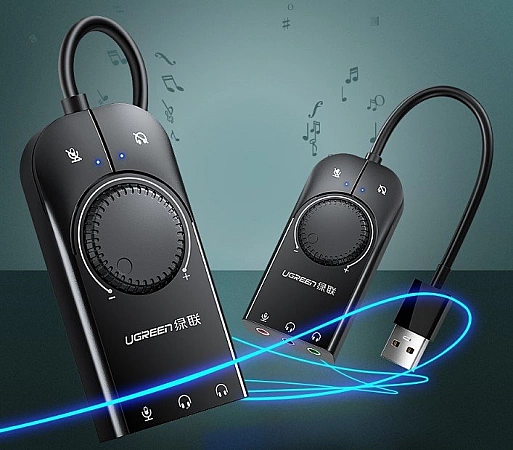 La tarjeta de sonido integrada no siempre satisface las necesidades de los usuarios. Músicos, jugadores y solo aquellos que aprecian la alta calidad del sonido, es mejor comprar equipos adicionales en Aliexpress. Uno de los más populares en el sitio fue este modelo de Ugreen. Hay conectores para auriculares y micrófono, la tarjeta en sí está conectada a la computadora a través de un cable USB. En el caso hay indicadores y una rueda de volumen. Puede solicitar una versión con un cable tipo C o un cable adicional de 1 M. Las revisiones elogian esta cosa útil para una PC: la calidad del sonido realmente mejora, se vuelve más clara y voluminosa. Pero el margen de volumen es pequeño, sobre todo en el micrófono.