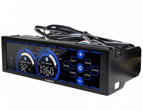 La gestión de RPM, así como la gestión de temperatura y voltaje en su PC será mucho más fácil con la ayuda de este útil producto. Puede manipular la configuración usando la pantalla LCD, y la presión se realiza con el lápiz óptico, mientras que la pantalla en sí ocupa casi toda la parte frontal de esta cosa. El dispositivo tiene 6 canales para medir la velocidad de los ventiladores, el sistema de refrigeración por agua y la bomba. Para casos críticos, se proporciona protección contra cortocircuitos. El módulo se suministra en dos colores de visualización: azul/blanco, rojo/blanco. La conexión se realiza a través de conectores de 3 pines y 4 pines, y el propio bloque se instala en la parte frontal de la caja junto al DVD-ROM.