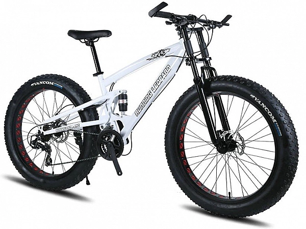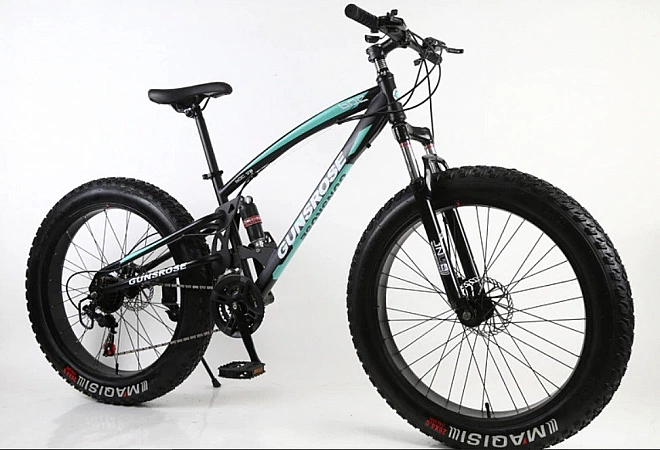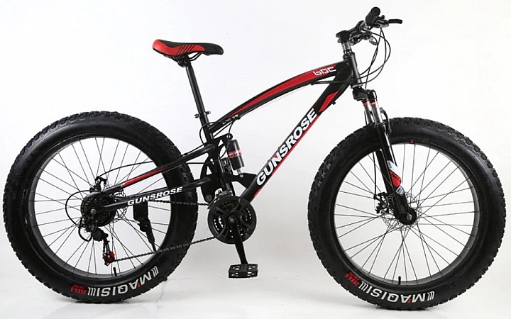 Fatbike GMINDI M-401 está disponible en una versión, con un diámetro de neumático de 24 pulgadas y 21 configuraciones de velocidad. Este modelo está destinado más a los niños, la bicicleta es ligera y compacta. Las personas altas tendrán que cambiar la tubería, de lo contrario, será incómodo sentarse. La llanta está hecha de aleación de aluminio, no es fibra de carbono, razón por la cual el precio es relativamente bajo. Para una mejor absorción de impactos, se proporciona una horquilla delantera engrosada. El kit incluye cerraduras, guardabarros, calcomanías, timbre, linterna, reflectores, bomba, llaves de reparación y bolsa. Los compradores de nueve criticaron todos los archivos adjuntos, se recomienda reemplazarlos. A pesar de esto, GMINDI M-401 sigue siendo una de las mejores opciones económicas en AliExpress.